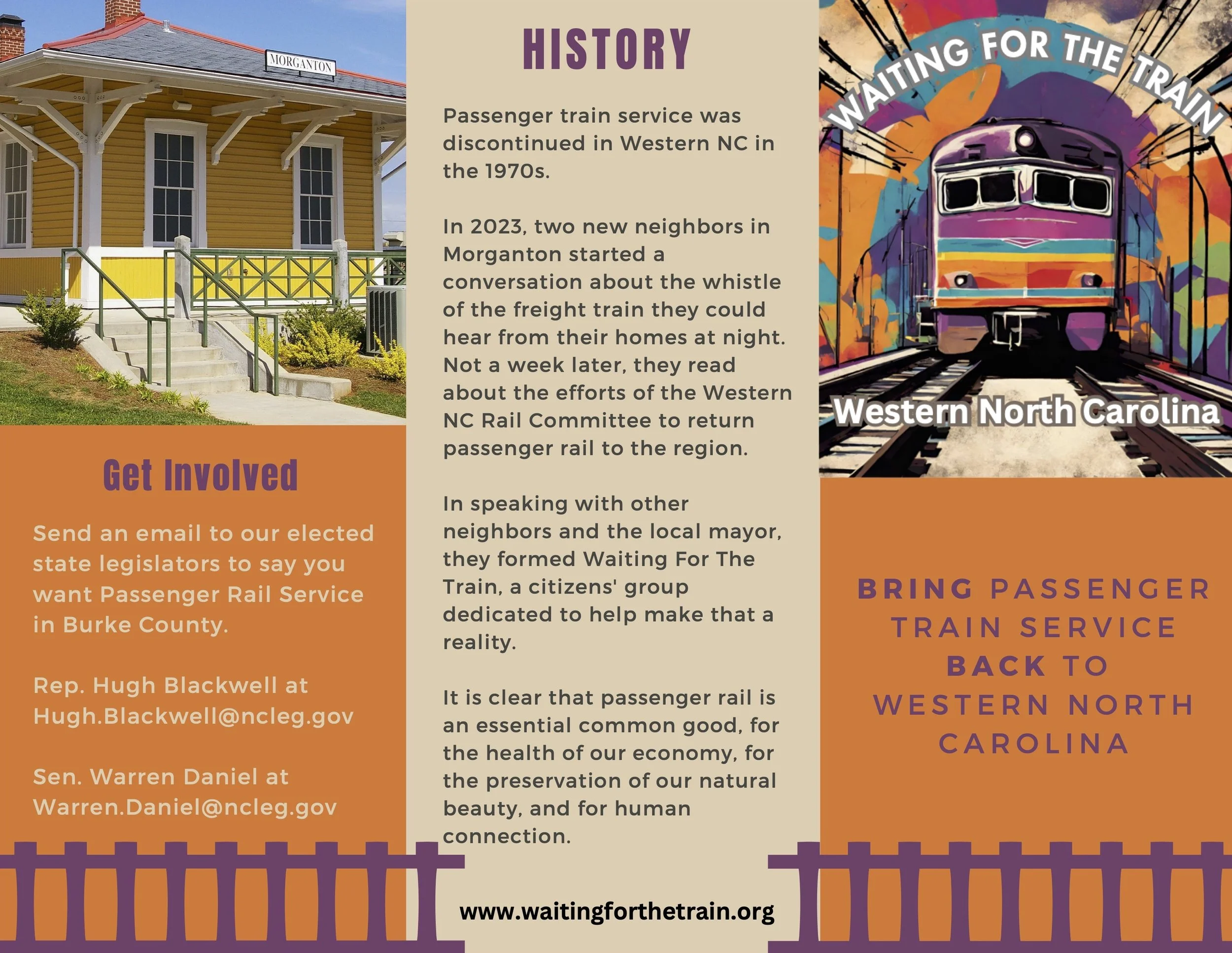 For more information on our efforts to bring passenger rail back to western North Carolina check out our flyer below!